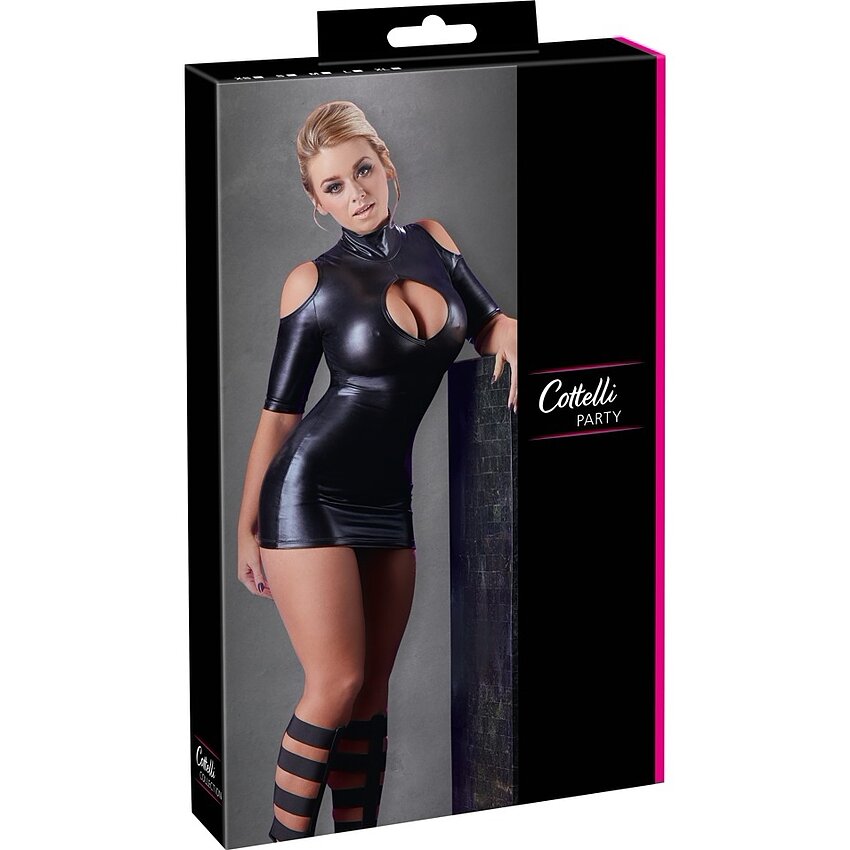 Transparența delicată într-un design exclusiv! Rochie cu mâneci lungi de la Noir, care este concepută complet din rețea elastică și are un imprimeu delicat de catifea într-un design floral. Lungime până la genunchi, cu o fantă lungă de 18 cm pe spatele rochiei. Gulerul ridicat este închis cu un nasture mic care se află deasupra decupajului ovale din spate. Chilotul din imagini poate fi comandat separat.