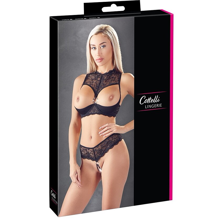 In stocPunctul culminant al acestui uimitor set seducător format din dantelă neagră sunt strasurile strălucitoare care subliniază sânii și zona intimă. Asta-i autentic la Abierta Fina!