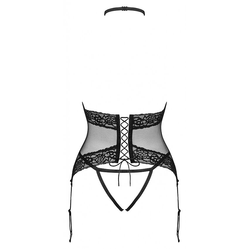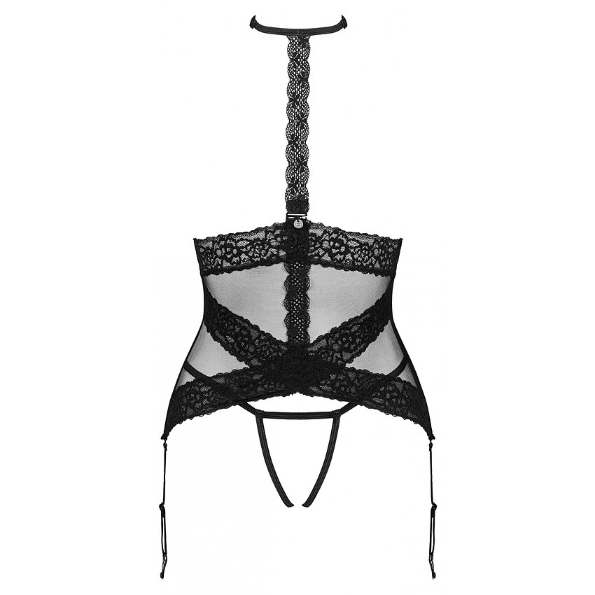 Croială senzuală dezvăluie corpul și elaborează un aspect deosebit de picant, în timp ce chilotul decupat încurajează desfătările obraznice. Șiretul comod de pe spate permite o potrivire sublimă la forma corpului. Chokerul unic care împodobește frumos gâtul și decolteul merită atenție.