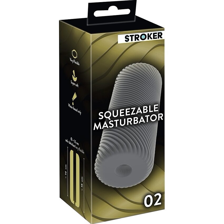 Masturbatorul Handy Squeezable 02 de la Stroker se distinge printr-un design discret și o carcasă texturată, antiderapantă. Tunelul elastic din material moale, analog pielii, prezintă nodule și caneluri pentru stimulare intensă. Presiunea este ajustabilă, oferind o senzație plăcută.