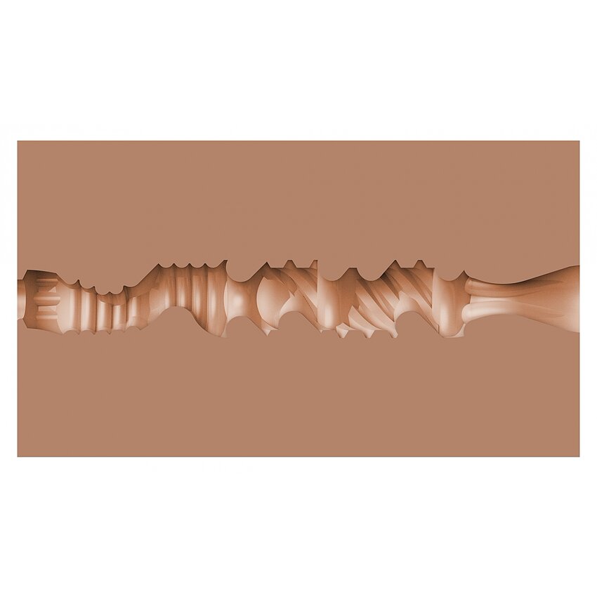 Fleshlight Ethereal inspirat de Eliza Ibarra oferă un cilindru proiectat pentru variație tactilă printr-un interior vigilent elaborat. Intrarea pornește cu un pasaj ondulat care conduce către o zonă cu inele și vene transversale, alternând texturi pentru senzații dinamice și controlate.