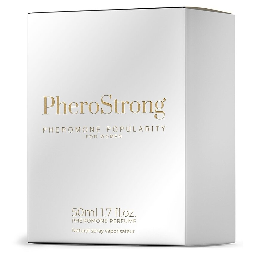Parfum cu feromoni PheroStrong Popularity 50 ml cu aromă inspirată de Paris: patchouli, acorduri albe, note muscate și floarea Datura. Formula discretă susține încrederea și se potrivește pentru uz zilnic.