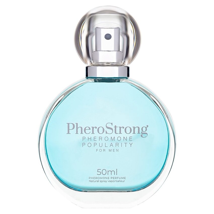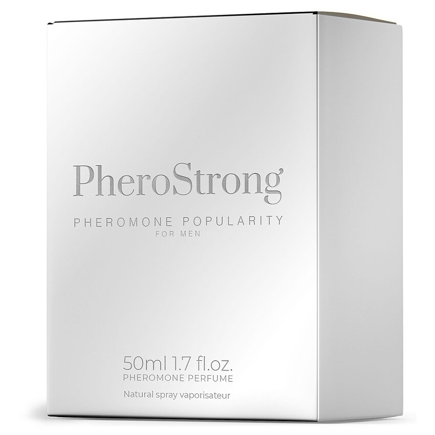 PheroStrong Popularity — apă de toaletă cu hormoni de atracție pentru bărbați, 50 ml. Note proaspete de geranium, lavandă și aldehide albe, urmate de tămâie și chihlimbar. Proiecție discretă și sigură; aplică cu moderație pe punctele pulsului.