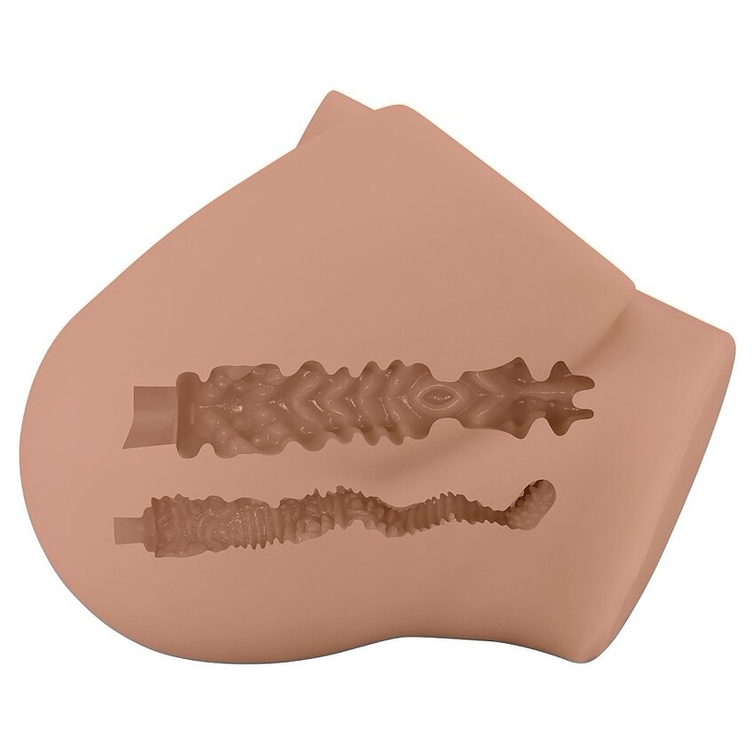 Masturbator dual Pretty Love Bernace, cu două orificii independente și tunel texturat pentru stimulare variată. Material moale, pliabil, ușor de curățat și depozitat discret.