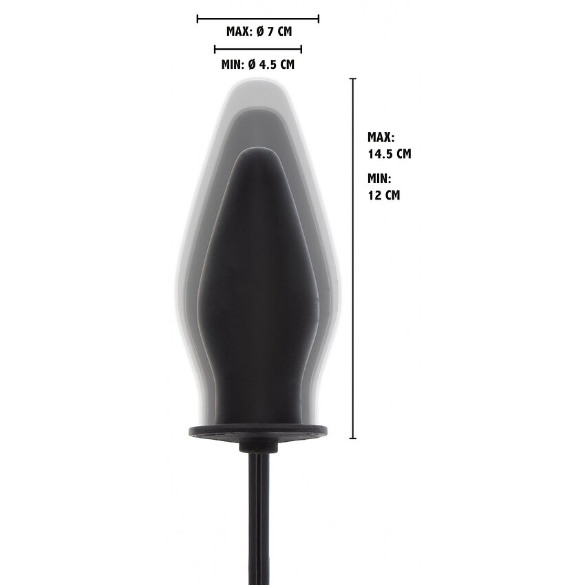 Dimensiuni aproximative: extindere totală înainte de umflare 11 cm; calibru înainte 4,2 cm; după umflare mărime până la 14,5 cm și diametru până la 7 cm. Pentru senzatii mai puternice si o alunecare mai facila se recomanda adaugarea in cos a unui lubrifiant. Spalati materialul finit ToyJoy Dop Anal Gonflabil închis la culoare atat inainte cat si dupa folosire cu un cleaner particular de igiena pentru astfel de produse.