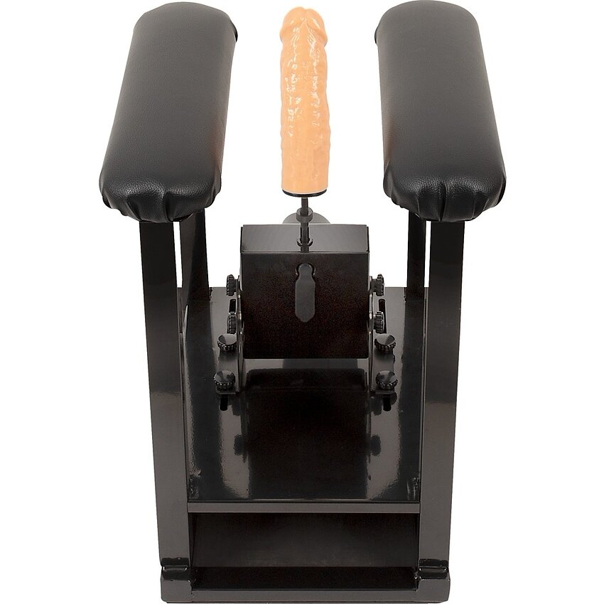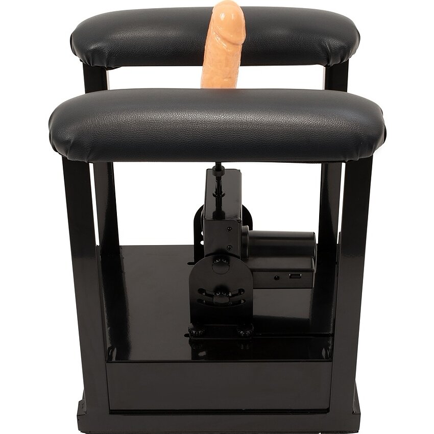 Beneficii și atribute practice: - Utilizare fără mâini cu poziționare flexibilă - Împingeri ajustabile până la 8 cm și frecvență ajustabilă - Tele-comandă cu fir 1,83 m pentru control la distanță - Alimentare la priză (110–240 V) cu adaptor adăugat și transformator 15 V - Dong realist din TPE, conform reglementărilor UE (fără ftalați) - Cadrul din oțel și perne căptușite pentru confort și stabilitate