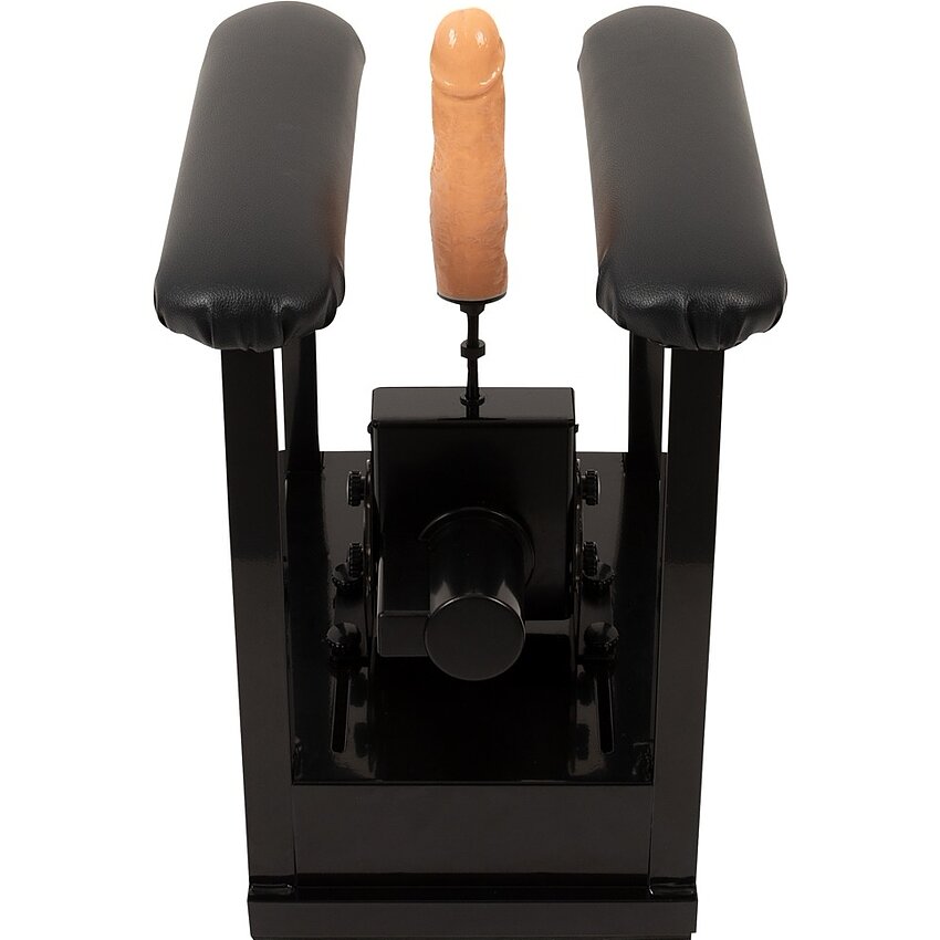 Mașină Sit-On stabilă, alimentare la priză. Braț reglabil cu impulsuri până la 8 cm, dong realist TPE (18 cm, Ø 4.8 cm), tele-comandă cu fir 1,83 m și perne căptușite. Ajustări cu cheie Allen; adaptor inclus.