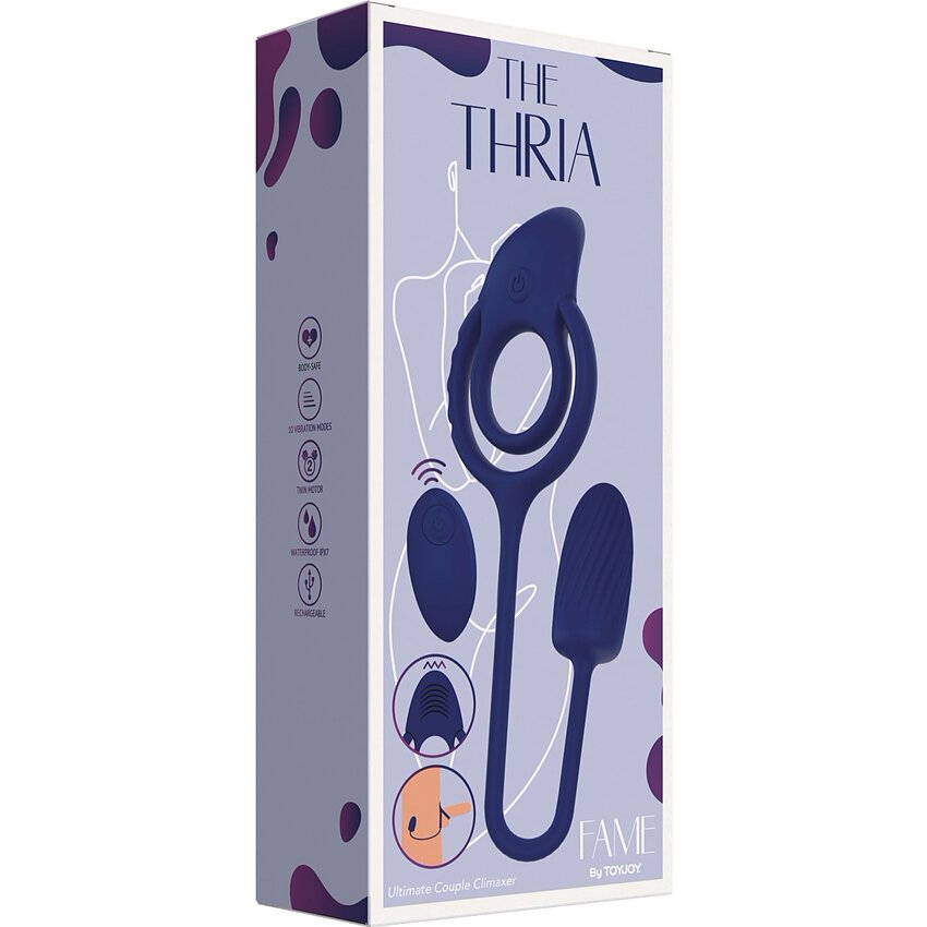 Produs din silicon lichid destul de moale, Thria este trainic la apă (IPX7) și reîncărcabil. Cele două motoare lucrează sincronizat sau separat, iar cele 10 moduri de vibrație acordă variații precise între pulsații și intensitate.