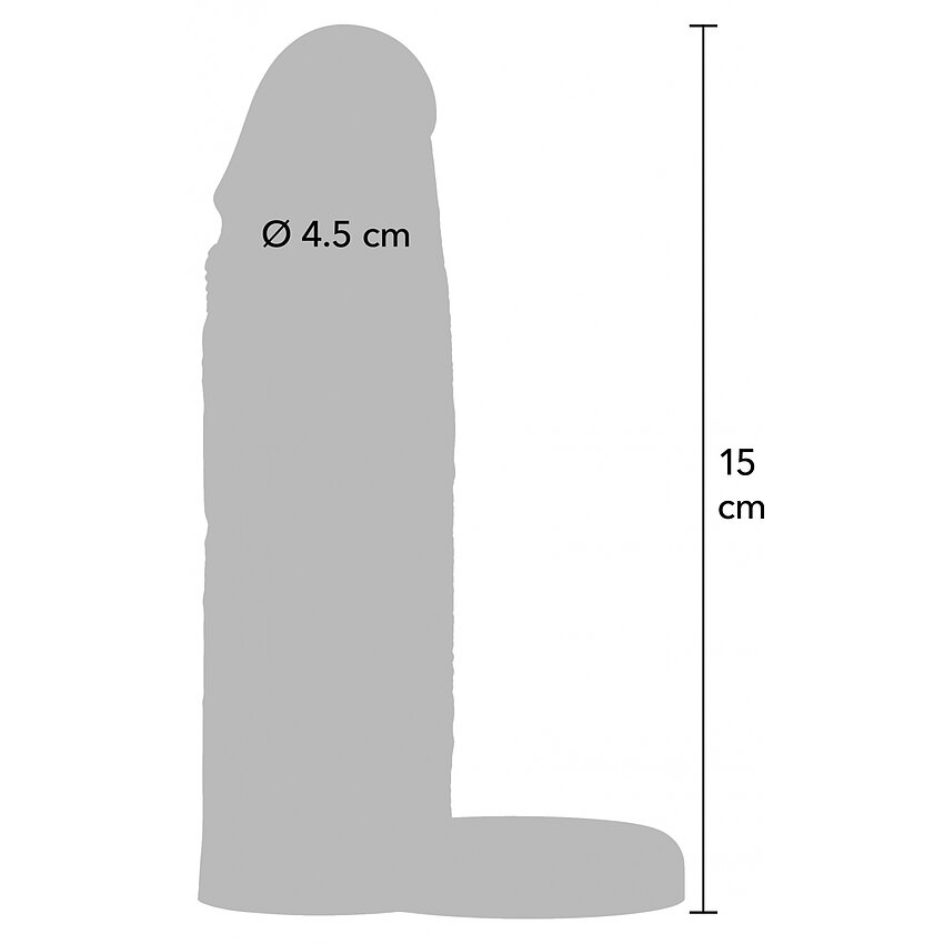 Cilindru de silicon lichid 15 cm cu inel integrat pentru stabilitate. Textură realistă, fină, cu vene discrete și cap definit. Inserabil 14 cm, diametru 3,5 cm, prevăzut cu ventuză pentru fixare. Material sigur, compatibil cu lubrifianți pe bază de apă.