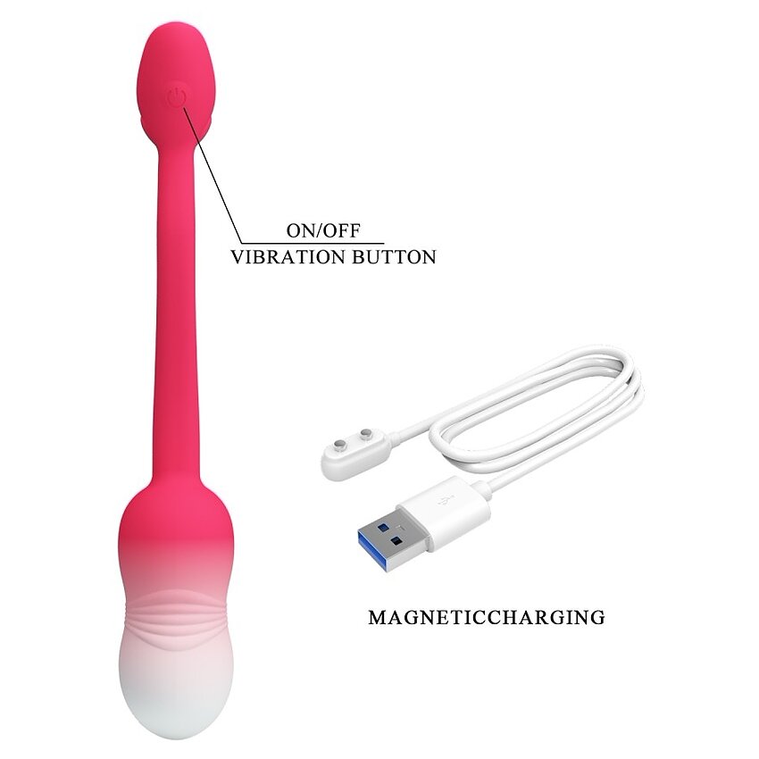 Beneficii/atribute: - Material: silicon prietenos cu pielea - Rezistent la apă pentru curățare ușoară - Control prin aplicație și utilizare manuală - 12 funcții de vibrație - Încărcare magnetică (reîncărcabil) - Cablu de tragere sigur - Culori: roșu, alb - Dimensiuni: lungime inserabilă 7 cm; mărime totală 20,2 cm; calibru 3,3 cm Pentru a încerca trairi mai intense si o glidare mai simpla va recomandam folosirea unui lubrifiant. Dezinfectati acest produs inainte / dupa folosire cu cleaneri aparte de igiena pentru astfel de produse.