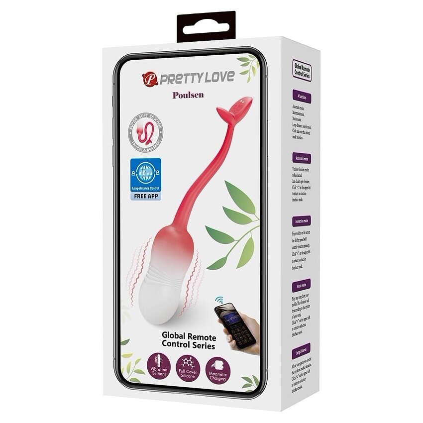 Vibrator egg Poulsen din silicon, impermeabil, control prin aplicație, 12 moduri și încărcare magnetică. ștergere ușoară; propus agent lubrifiere pe bază de apă.
