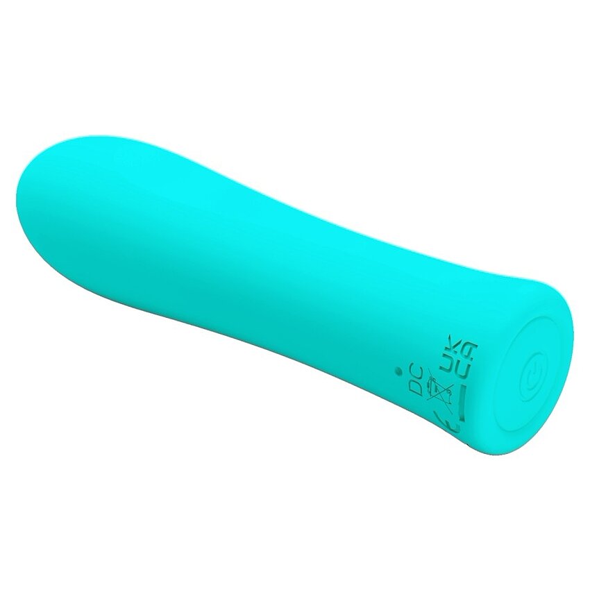 Mini vibrator cu acumulator Pretty Love Alfreda Green: 12 feluri de vibraţie, corp din silicon texturat şi ABS, motor zdravăn dar silenţios. Compus compact, ergonomic, control necomplicat la bază. Grozav pentru utilizare discretă.