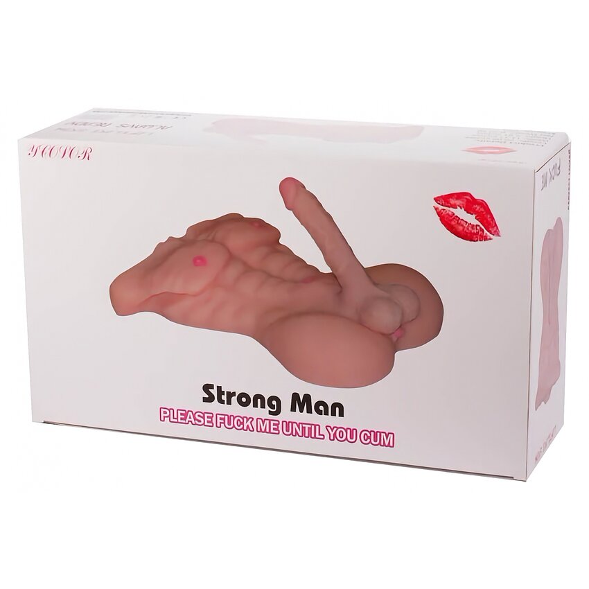Strong Man este un torso-masturbator creat cu atenție la detalii, realizat din TPR moale, asemănător pielii. șablonul reproduce corpul bărbătesc cu pectorali și abdomen, include găuri realiste și un dildo inserabil de 17 cm (diametru 4 cm). Baza plată și greutatea de 6,25 kg asigură stabilitate în utilizare. Mărimi totale: 51 x 36 cm.