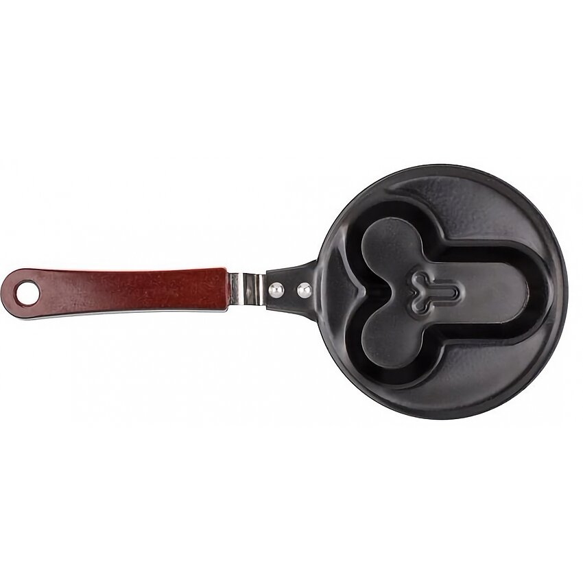 Tigaie compactă Ootb, cu partea interioară tăiat în înfățișare amuzantă de penis, pentru ouă prăjite și clătite. Corp din oțel teflonat, ansamblu de prindere din plastic, ușor de curățat. Diametru circa 14 cm. Utilizare pe plită; a nu se lăsa la îndemâna copiilor.