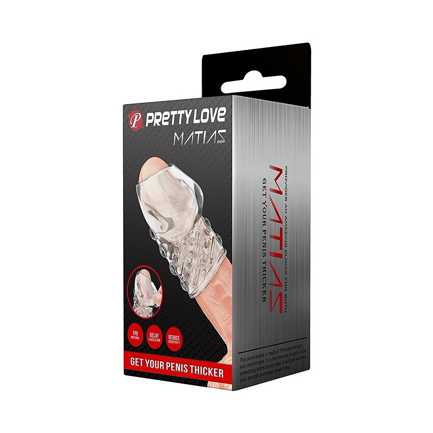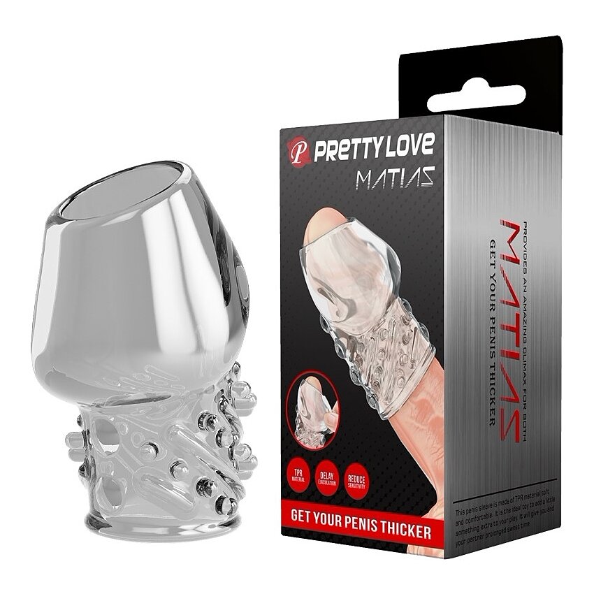 Manson extensibil Matias de la Pretty Love, transparent, din TPR moale. Oferă sprijinire și fermitate, confort și întreținere ușoară. Calibru flexibil 2.6–3.6 cm, lungime nefragmentată 6.5 cm.