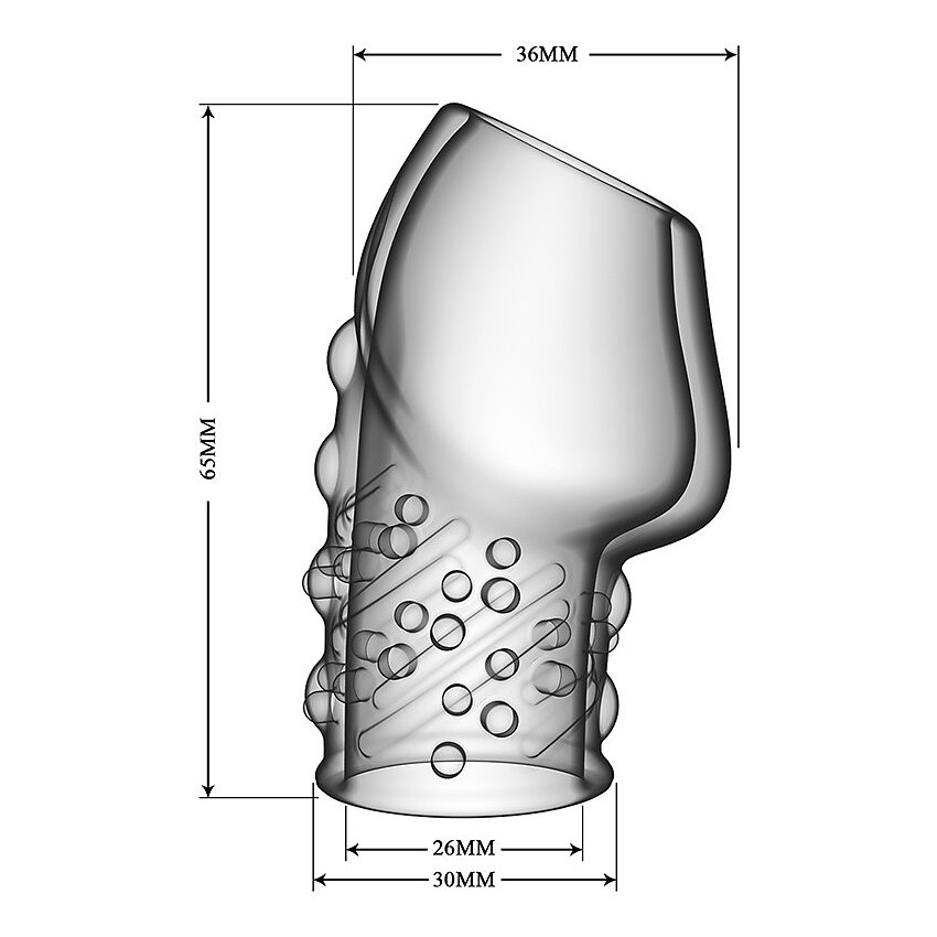 Beneficii și atribute: - Material moale și elastic: TPR, satisfăcător la atingere - Estetică transparent, discret - Susține fermitatea minus presiune excesivă - Calibru elastic care se adaptează între 2.6–3.6 cm - Extindere totală compactă: 6.5 cm - Ușor de purificat și întreținut - Potrivit pentru utilizare responsabilă