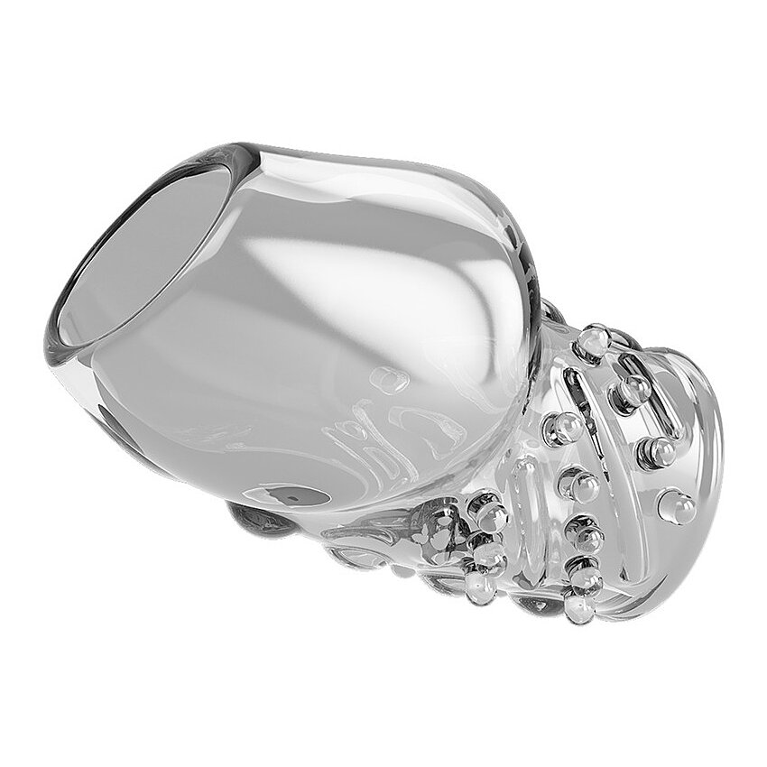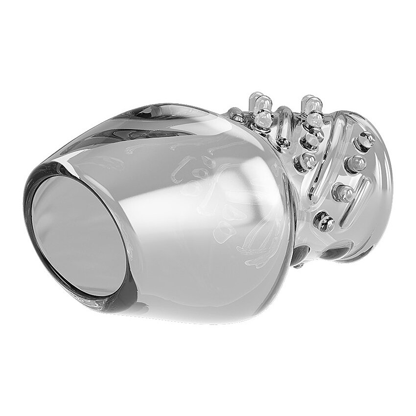 Designul transparent menține fermitatea excluzând a aplica apăsare excesivă și limitează surescitarea directă a zonelor sensibile, contribuind la sesiuni intime mai confortabile și prelungite. Se potrivește unei game variate de circumferințe din cauza elasticității materialului.