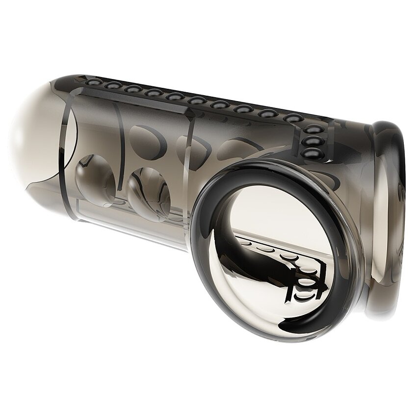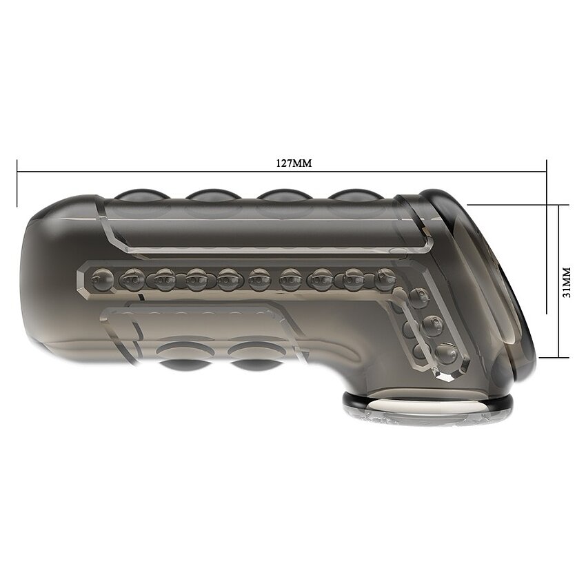 Manșon practic din TPE, proiectat pentru a adăuga textură și tărie la utilizarea individuală. Materialul catifelat și neted se întinde pe ax și oferă senzații suplimentare datorită texturii interioare.