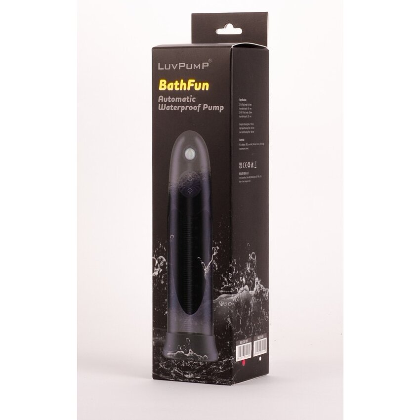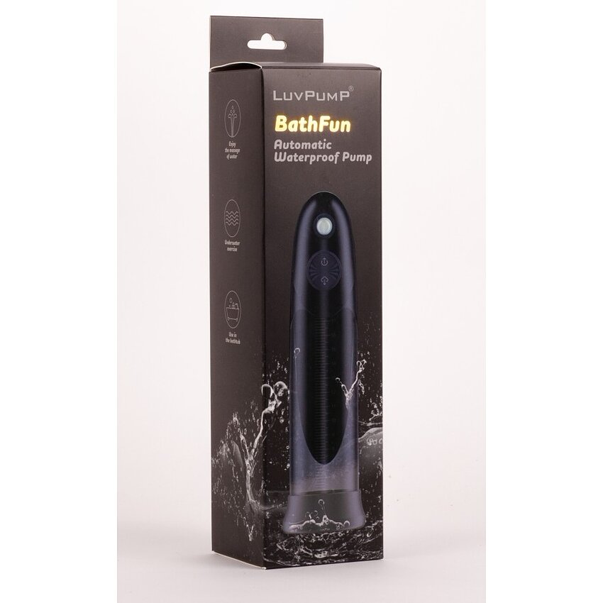Pompă electronică Realov BathFun, proiectată pentru utilizare cu apă sau în regim uscat. Utilizează presiunea uniformă a apei pentru un vid mai constant, dar funcționează la fel de bine și excluzând apă. Cilindrul clar include riglă în centimetri și inch pentru monitorizare precisă.