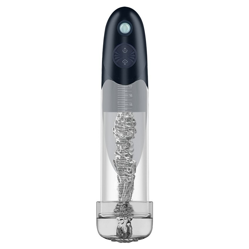 Beneficii și atribute concrete: - 3 chipuri de aspirare pentru ajustare fină a presiunii - Utilizabil cu apă pentru apăsare mai normală sau lipsit de apă ca pompă de vid - Cilindru străveziu cu riglă în cm și inch pentru monitorizare - Control rudimentar cu 3 butoane și eliberare rapidă a presiunii - Reîncărcabil prin USB magnetic (cablu inclus); LED pentru stare încărcare - Autonomie estimată 160–180 minute după cam 2,5 ore de încărcare - Realizare din ABS și silicon, estetică trainic la apă - Poate fi folosit și ca dispozitiv de stârnire fără activarea vidului