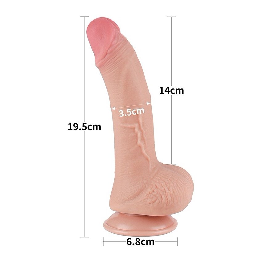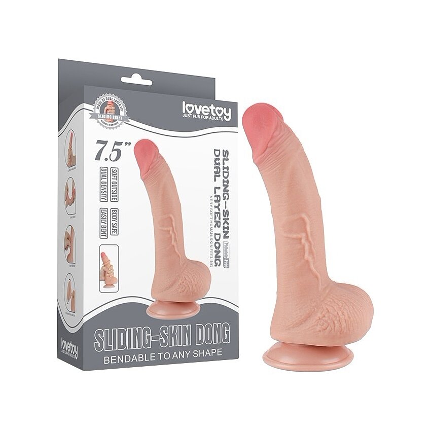 Penis artificial LoveToy Sliding-Skin 19.5 cm, Ø 3.5 cm — material TPE dual-layer cu miez ferm și exterior moale. Ventuză detașabilă pentru hands-free, elastic și compatibil cu lubrifianți pe bază de apă. Ambalare discretă.