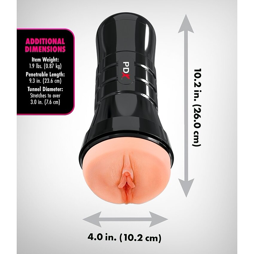 Materialul Fanta-Flesh, extensibil și plăcut la atingere, se conturează bine proiectat pe forma utilizatorului. Canalul intern, prevăzut cu texturi strategice, crește stimularea, iar capacul posterior permite reglarea suctiunii pentru un control precis al presiunii. Carcasa EZ-Grip, antiderapantă, facilitează prinderea și manevrarea chiar și pe perioade îndelungate.