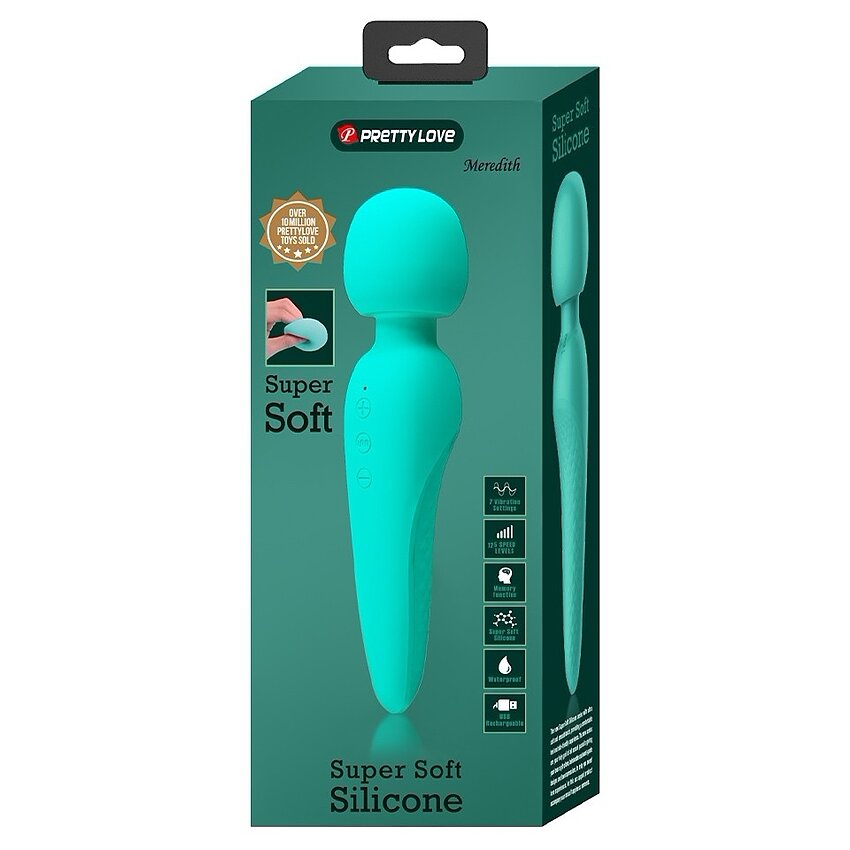 Pretty Love Meredith este un vibrator tip wand, conceput pentru utilizare simplă și plăcută atât în apă, cât și în afara ei. Capul flexibil din silicon moale se adaptează lin la contururi, oferind un contact plăcut, iar carcasa compactă îngăduie manevrare facilă.