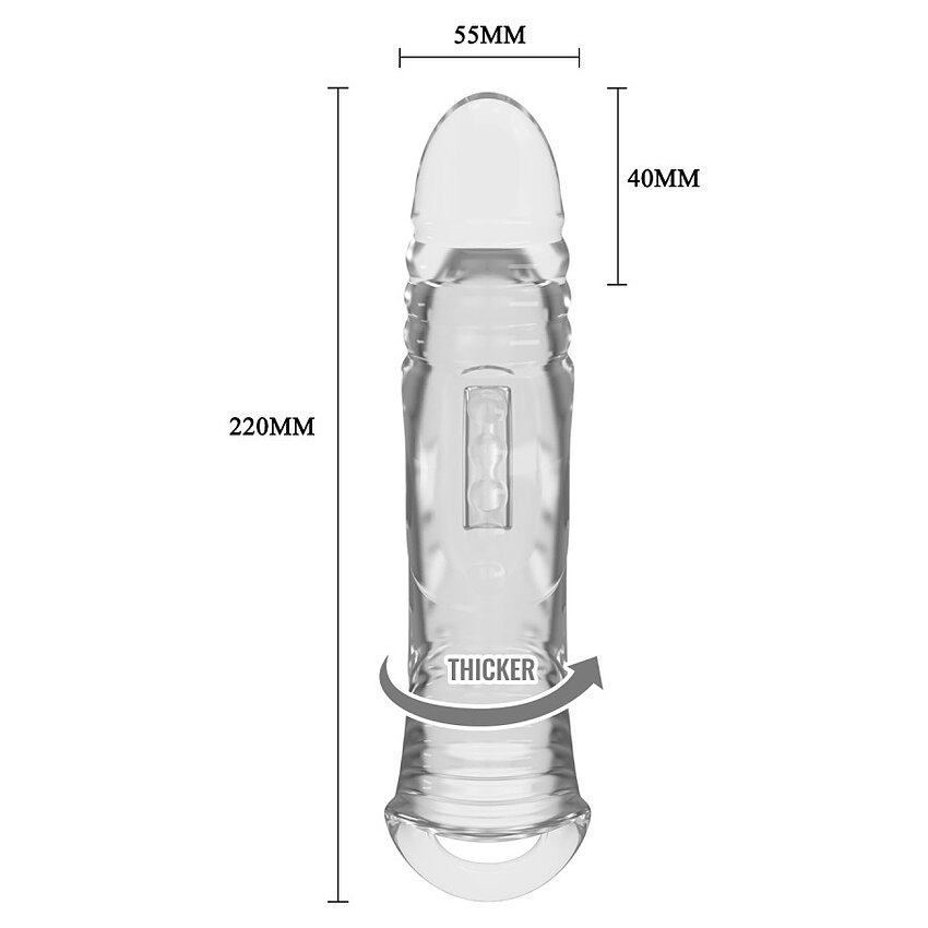 Manson realist din TPE, care îmbogățește extindere și grosime. Cap pronunțat și cingătoare pentru scrot care fixează extensia ferm. Potrivit pentru bărbați cu dificultăți de erecție sau anxietate de performanță.