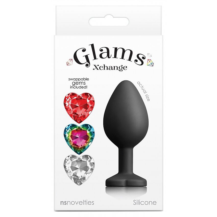 Dop anal Glams Xchange Heart Medium, din silicon premium, lungime 8.1 cm și diametru 3.5 cm. Vârf rotunjit pentru inserție confortabilă, trei pietre interschimbabile în variantă de inimă, rezistent la apă. Recomandat cu agent lubrifiere pe bază de apă.