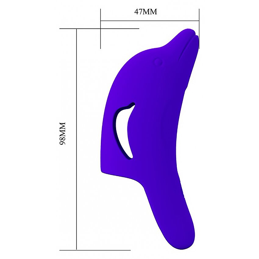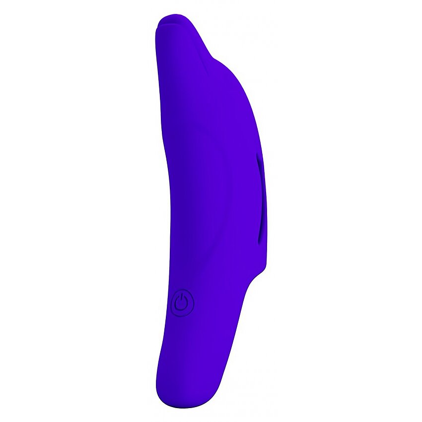 Vibrator slip-on din silicon Pretty Love Delphini, cu 10 moduri de vibraţie. Vârf înclinat şi texturat pentru stârnire precisă, se fixează pe deget pentru control bun. Compact, ușor de purificat și discret.