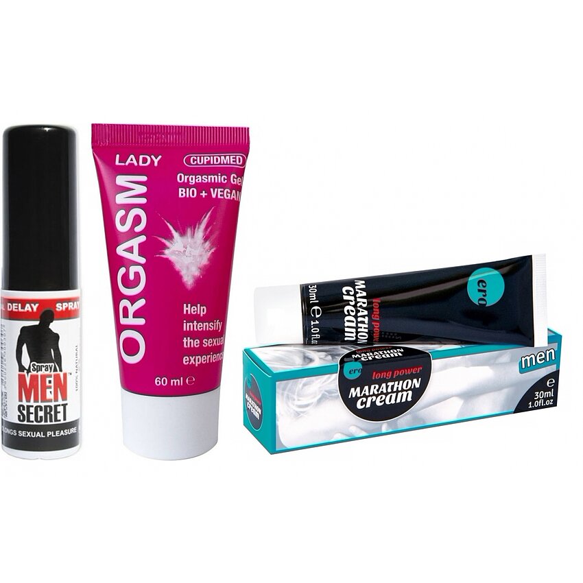 Detalii și beneficii cheie: - Gel Climax Lady (60 ml) — textură plăcută, fără parfum, hipoalergenic; amplifică receptivitatea și oferă senzații de intensificare care crește contactul. - Atomizator Men Secret (15 ml) — formulă licențiată, reduce hipersensibilitatea punctuală pentru a întârzia ejacularea și a lăsa controlul în membrele celui care îl folosește; eficace demonstrată clinic. - Alifie Marathon Long Power (30 ml) — combinație de extracte care susțin circulația locală (Ginkgo, ardei cayenne, camfor etc), emolienți care favorizează absorbția și menținerea erecției pe termen mai lung.