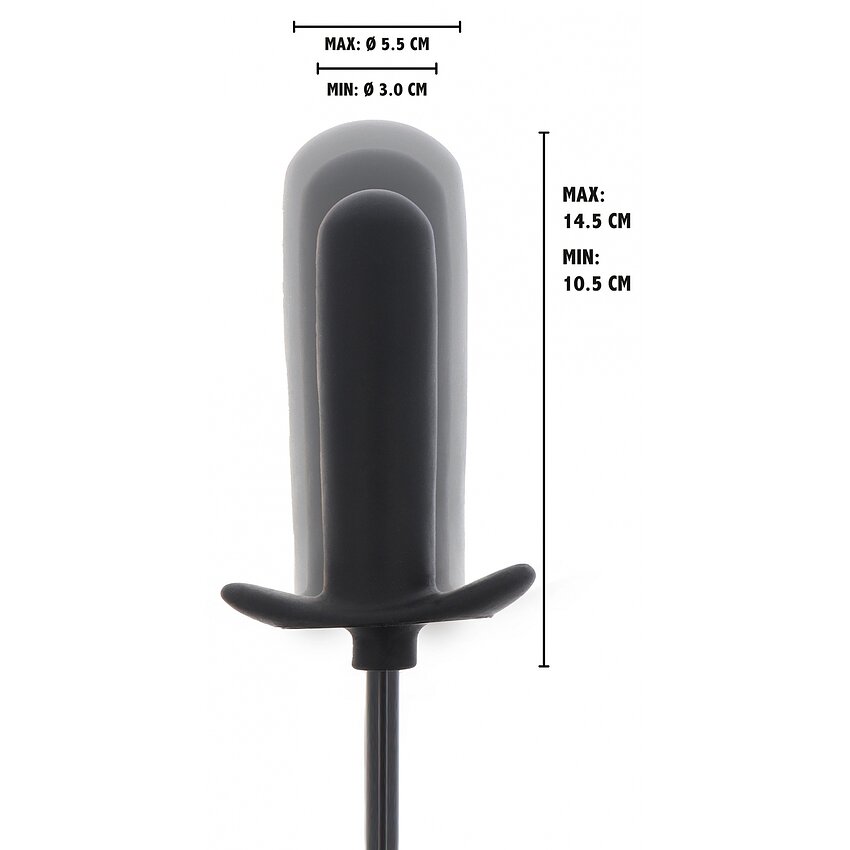 Plug anal umflat din silicon 100% pentru introducere lină și lungime controlată. Valve de eliberare rapidă pentru siguranță. Inserabil 10.5–14.5 cm, diametru 3–5.5 cm. Ideal pentru reglaj progresiv.