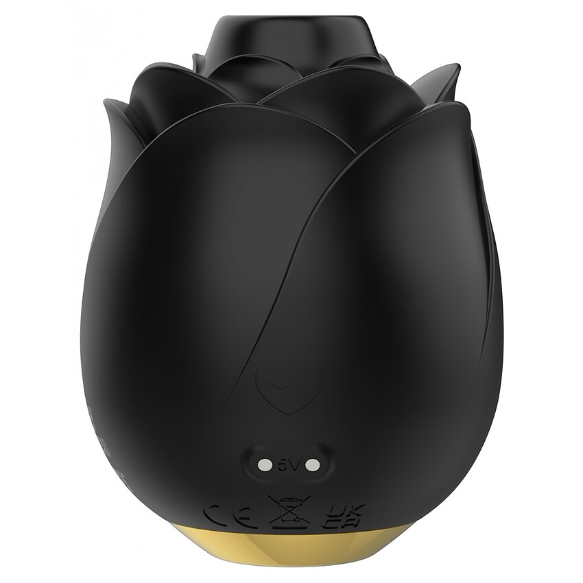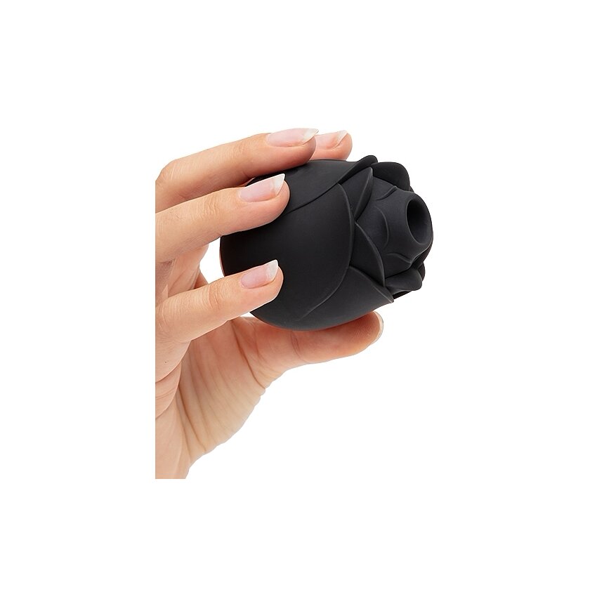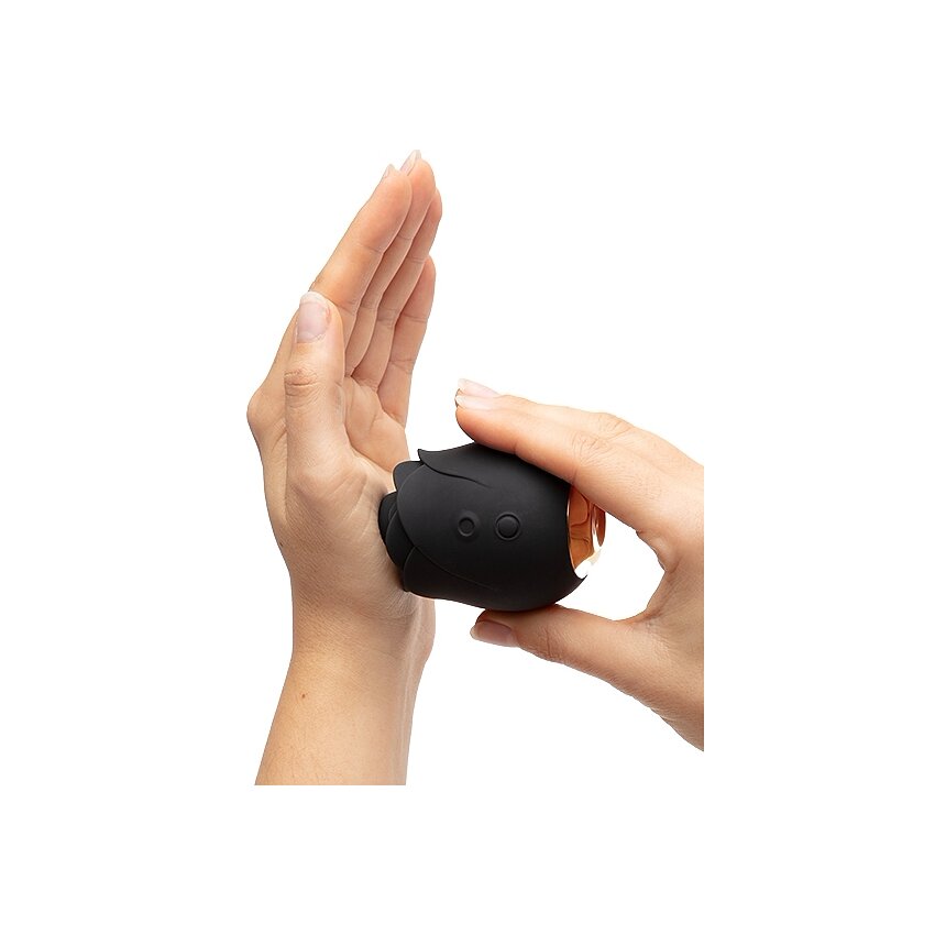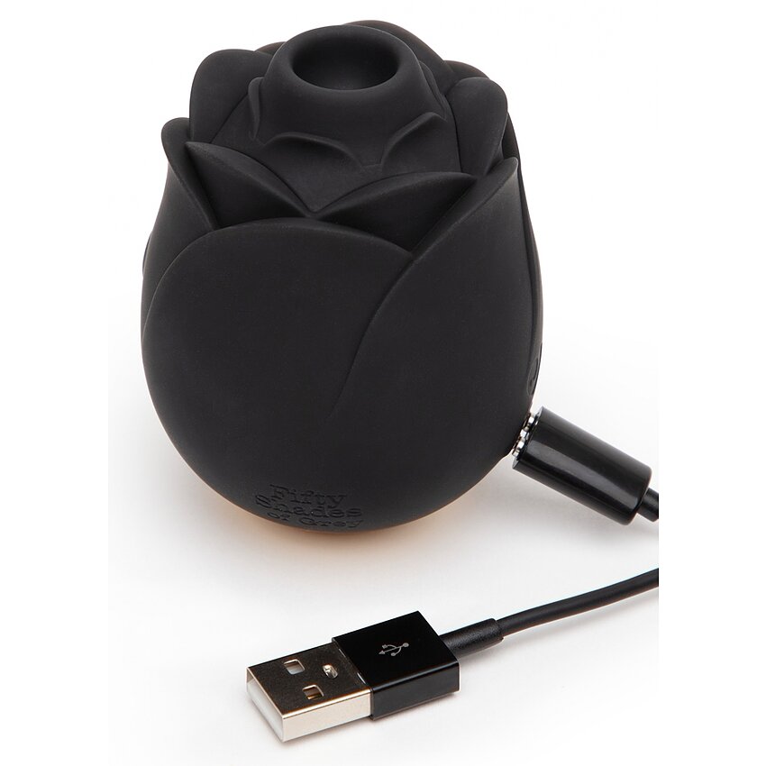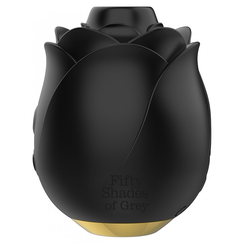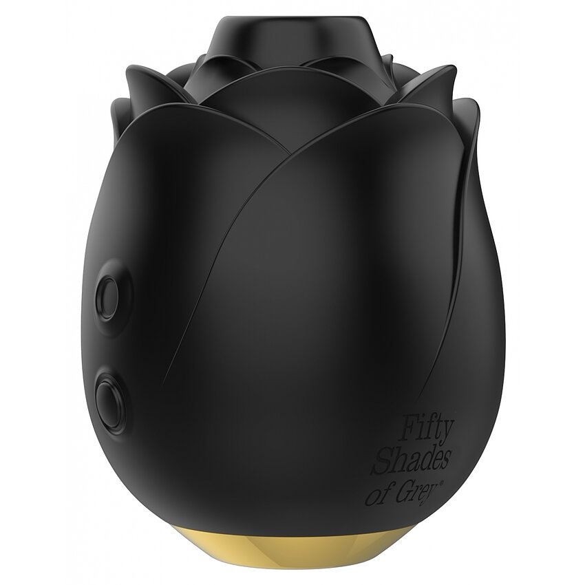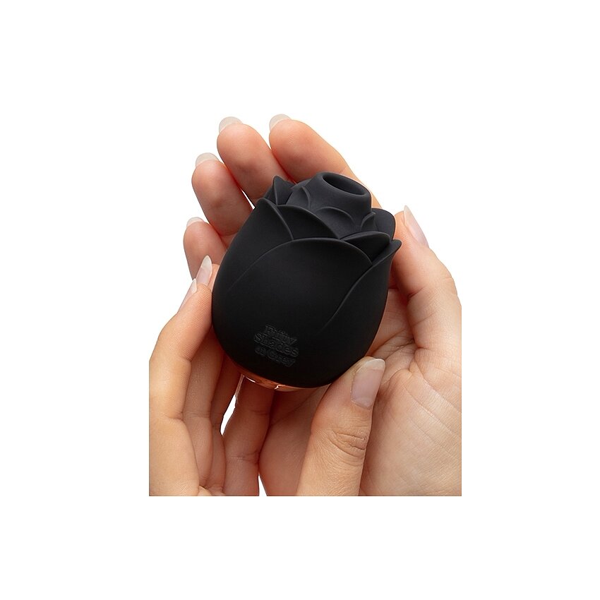 Stimulator pentru clitoris cu acumulator Fifty Shades of Grey Hearts Flowers. Digitalizare Pleasure Air pentru senzație de suctiune fără contact. 6 niveluri, 4 moduri, IPX7, autonomie 65 min. Silicon și ABS, design discret negru.