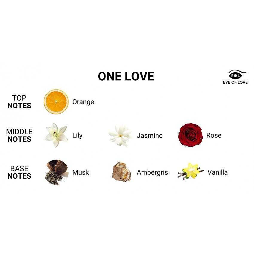 Parfum cu hormoni de atracție Eye of Love, flacon 10 ml. Formula amestecă feromoni cu note olfactive selecte pentru o prezenţă discretă şi încredere. La dispoziție în Morning Glow, After Dark şi One Love. Aplicare: pulverizaţi pe încheieturi sau în spatele urechilor.