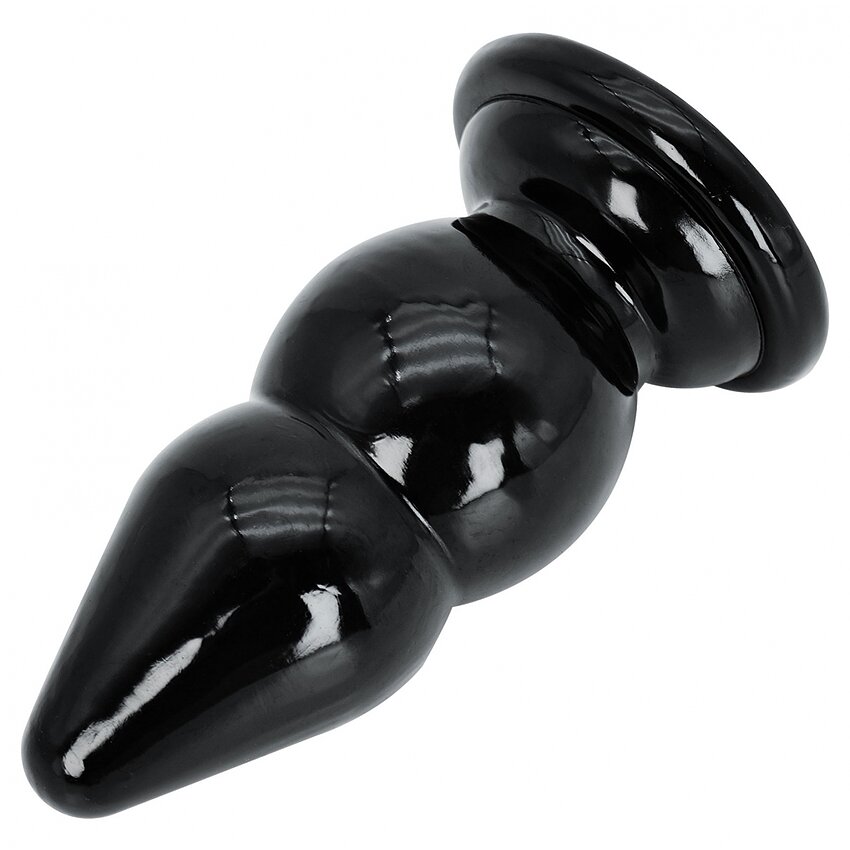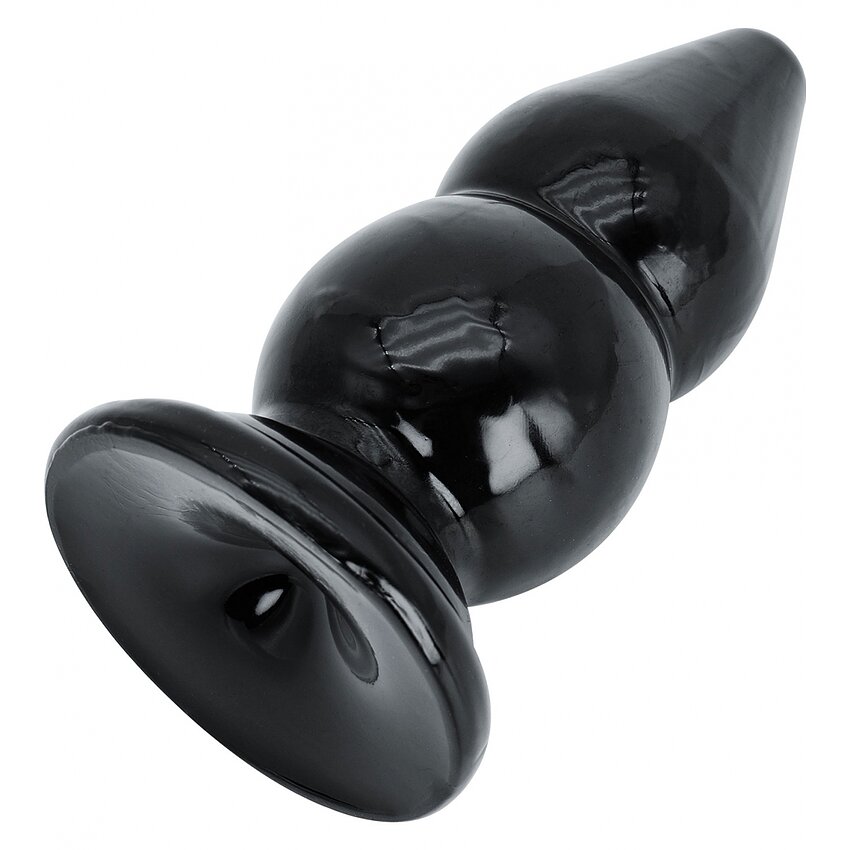 Plug anal XL 17 cm din PVC neted, tentă negru, cu bază largă pentru siguranţă. Calibru inserabil 6–6,5 cm. Potrivit pentru utilizatori avansaţi; se curăţă uşor şi se depozitează discret.