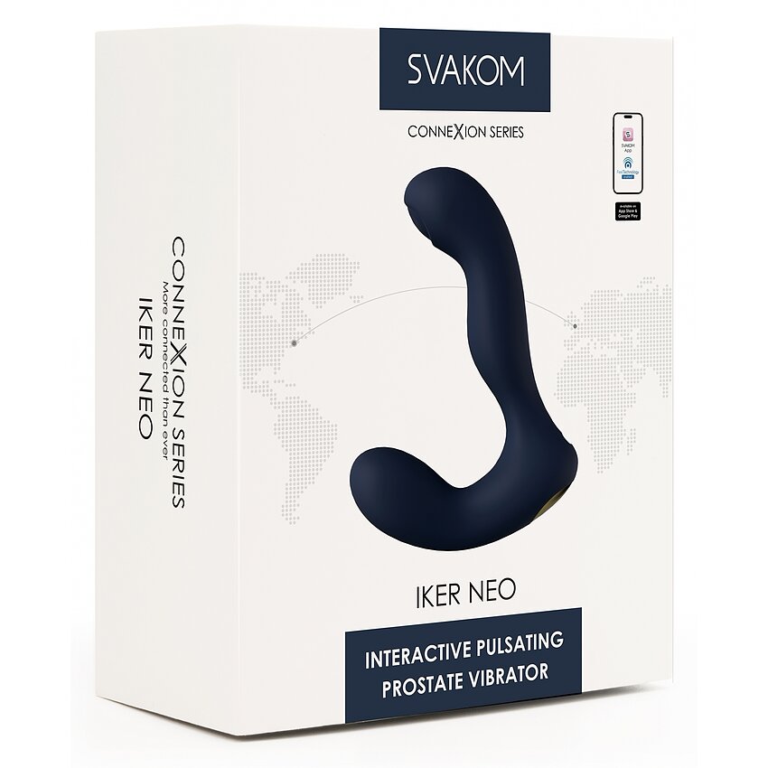 Iker Neo de la Svakom este un vibrator prostatic pulsant, cu formă bulbous și gât elastic pentru poziționare precisă. Are 5 moduri de vibrație și 5 setări de pulsație, motor silențios, memorie, blocare pentru transport și control prin aplicația SVAKOM.