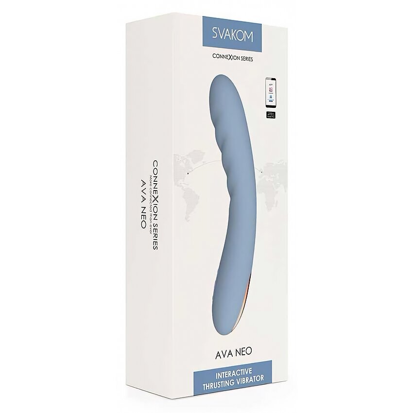 Ava Neo de la Svakom este un vibrator plămădit pentru stârnire profundă prin combinația de împingere și vibrație controlabile separat. Capul amortizat și suprafața din silicon lichid asigură alunecare blândă și confort în utilizare. Designul submersibil îngăduie folosirea la duș sau baie și purificarea facilă.