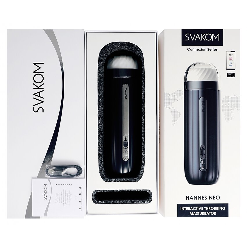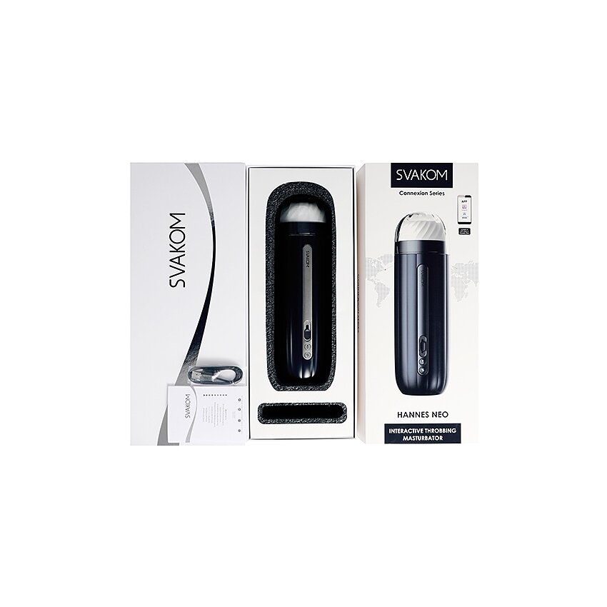Svakom Hannes Neo — masturbator automat reîncărcabil, cu 5 maniere de pulsaţie și încălzire până la 38°C. Manson detașabil din TPE ultra-moale, inserție până la 15 cm, control local sau prin aplicație pentru control la distanță. Spălare rapidă.