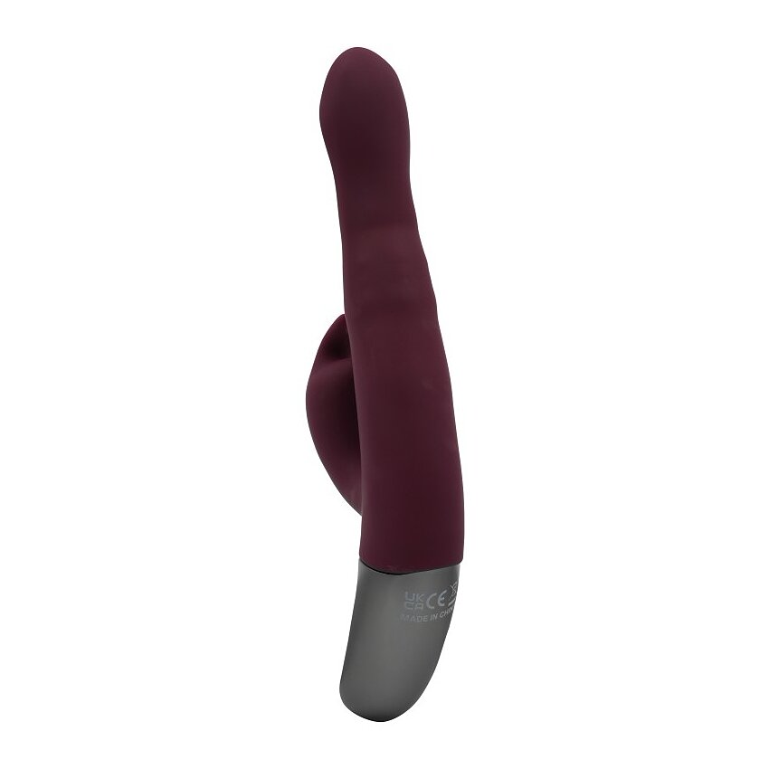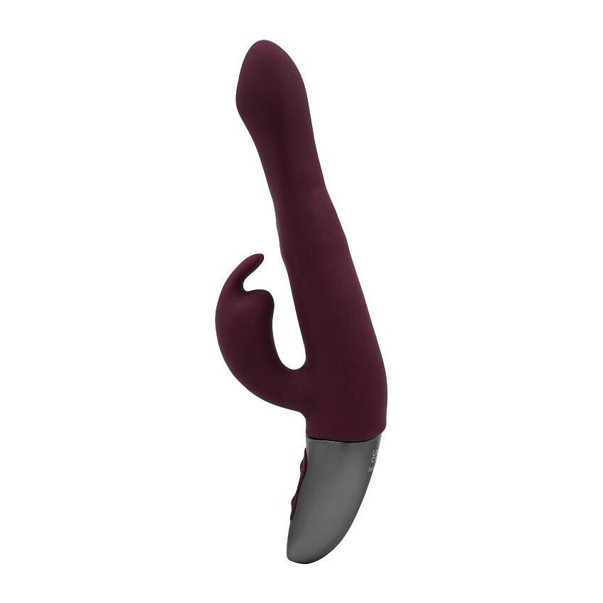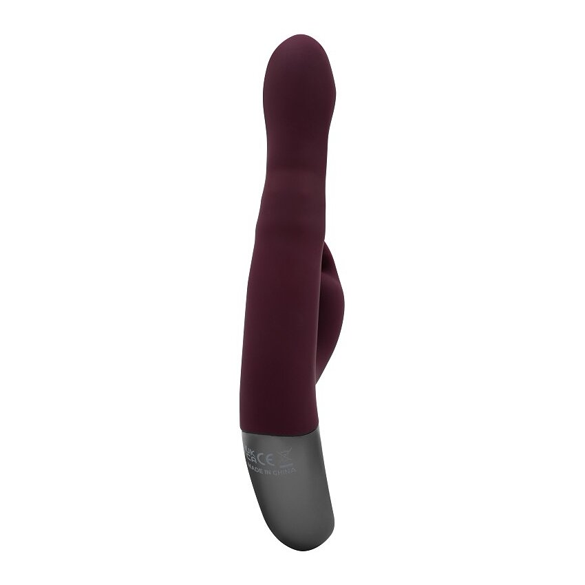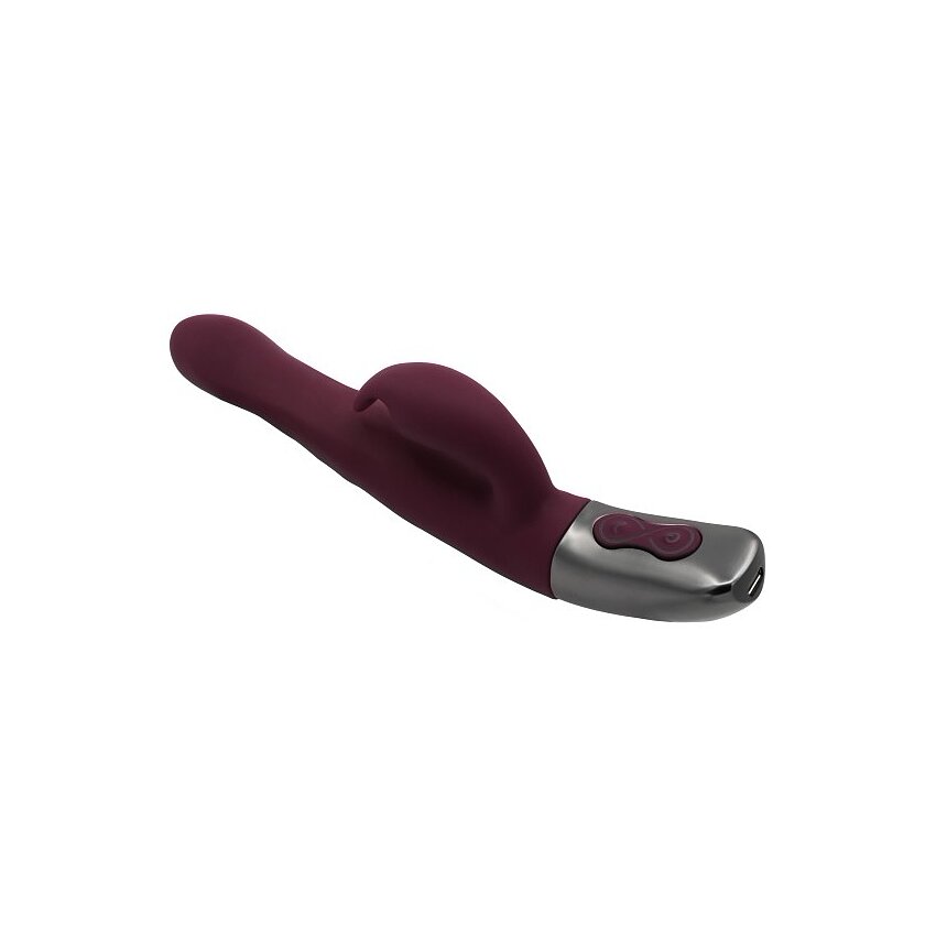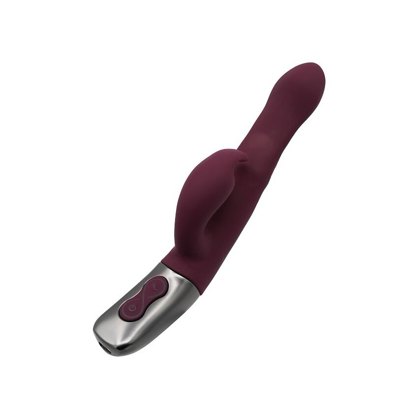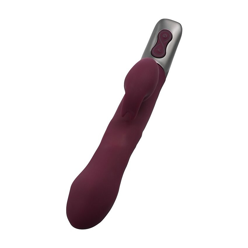 Vibrator reîncărcabil din silicon, cap cu 10 maniere de vibraţie şi 10 moduri de rotaţie, plus vibrator pentru clitoris cu 10 setări. Ansamblu de prindere metalic, buton luminos în întuneric şi textură uşor striată pentru atingere confortabil. Recomandat agent lubrifiere pe bază de apă.