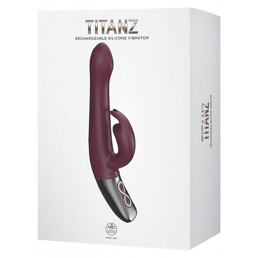 Titanz de la NMC este un vibrator tip rabbit, concretizat din silicon de înaltă excepție cu suprafaţă uşor striată pentru contact plăcut. Capul leagă 10 chipuri de vibraţie şi 10 feluri de rotaţie pentru stârnire variată; bratul pentru clitoris are 10 setări independente.