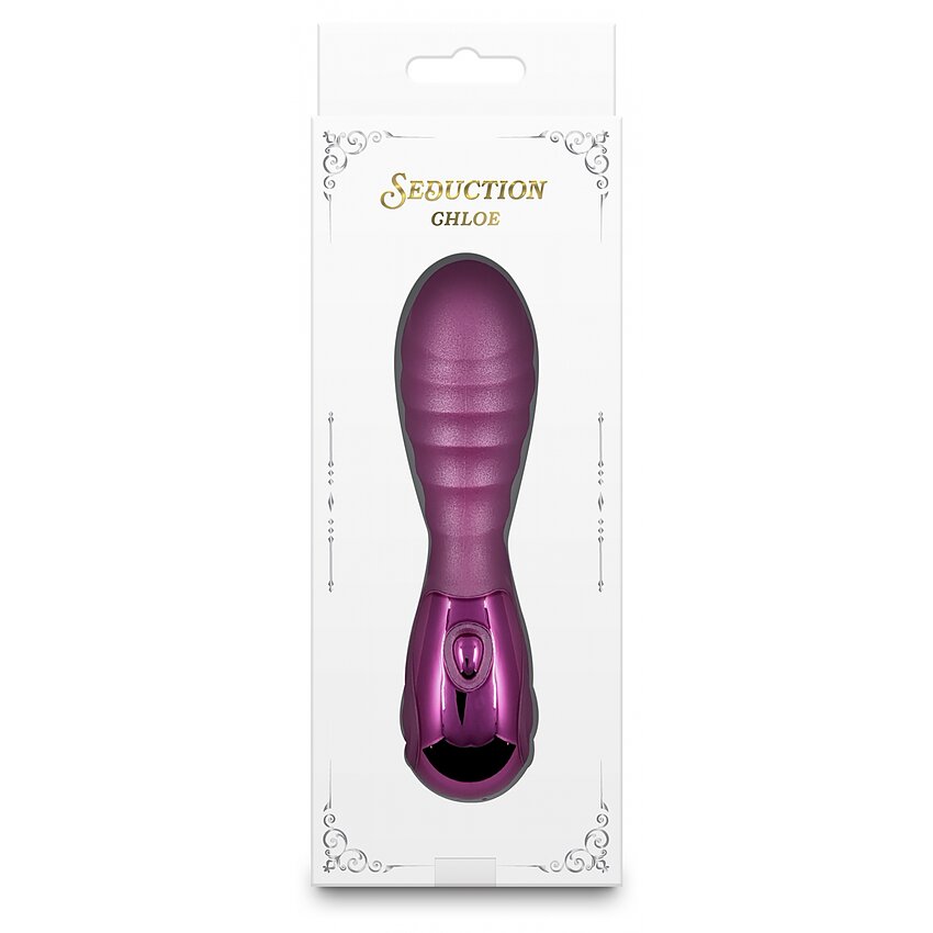 Mini vibrator Seduction Chloe, din silicon hipoalergenic, cu textură ondulată și 3 viteze/7 funcții. Cu acumulator USB, viguros la apă, compact și ușor de folosit. Potrivit pentru stimulare precisă a zonelor erogene; compatibil cu lubrifianți pe bază de apă.