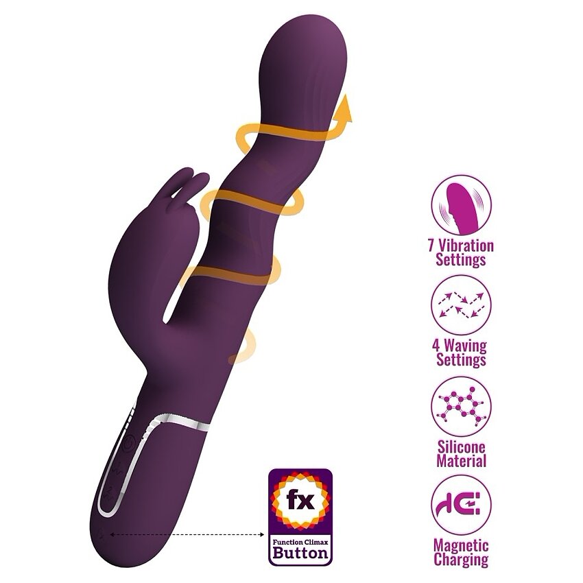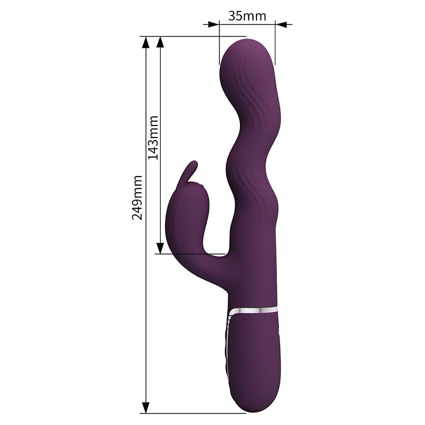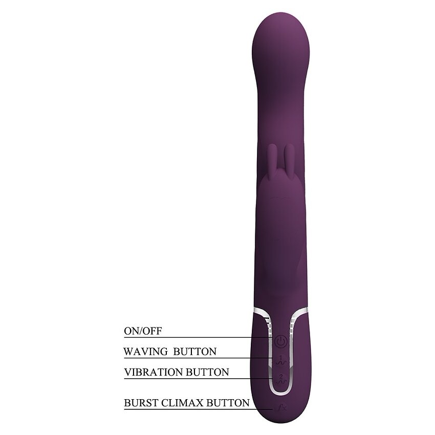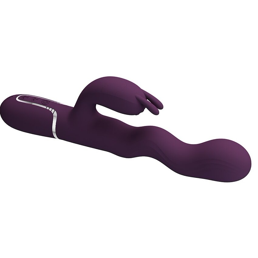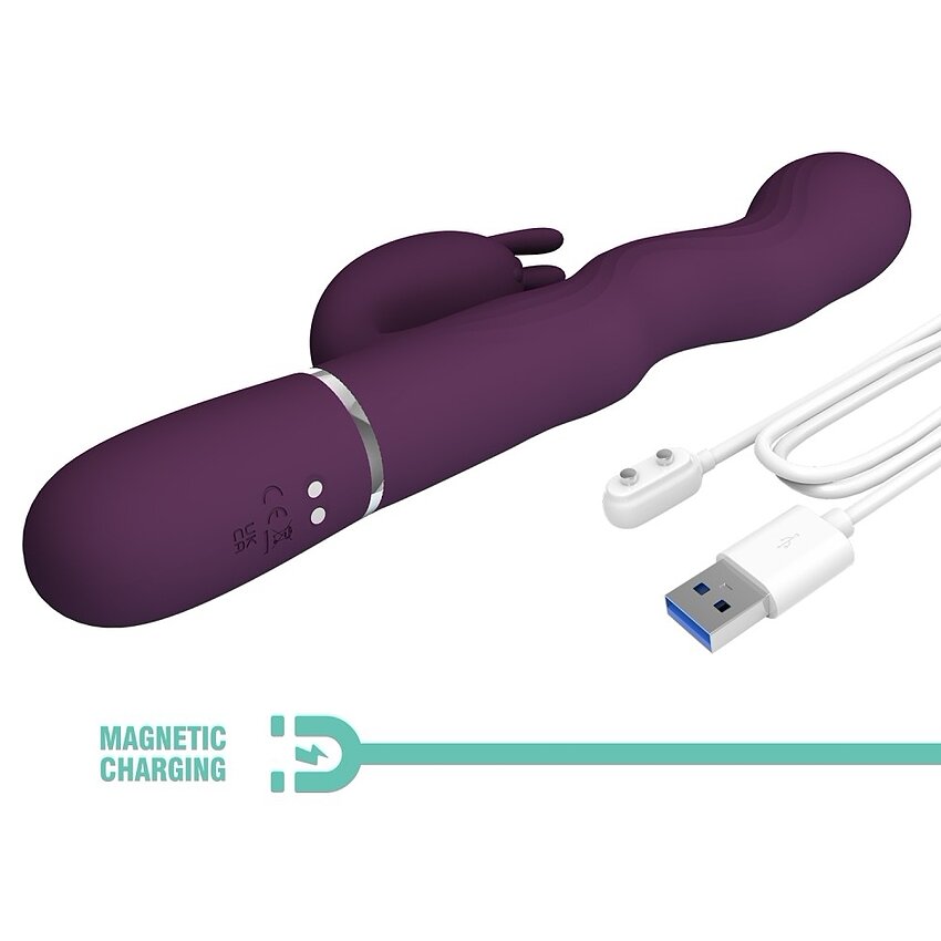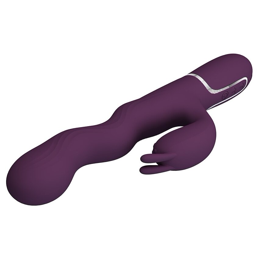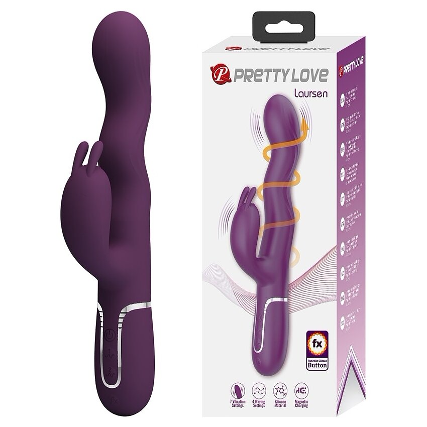 Vibrator Pretty Love Laursen Purple II, din silicon medical, îndoit pentru stimulare G-spot și clitoris. Reîncărcabil, încărcare magnetică, 7 moduri de vibrație + 4 moduri de undă și buton de boost pentru intensitate maximă.