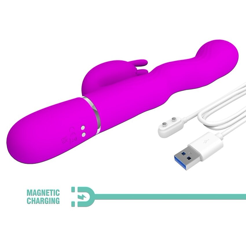 Vibrator îndoit Pretty Love Laursen, reîncărcabil, din silicon medical, 7 trepte de vibrație și 4 moduri de oscilație. Buton de intensificare pentru un impuls rapid. Suprafață netedă, ergonomic, ușor de curățat.