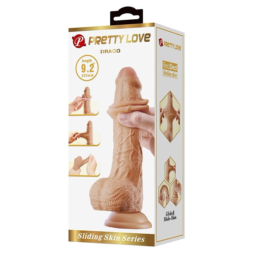 Pretty Love Draco este un penis virtual realist făcut pentru contact confortabil și fixare sigură. Are lungime totală de 23,3 cm, cap proeminent și textură ce imită dermă pentru senzații naturale.