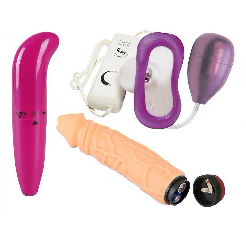 Detalii articole și beneficii: - Vibrator 21cm Big Boy: material PVC moale, inserabil 18,5 cm, diametru 4,5 cm, textură cu vene și cap pronunțat pentru senzație realistă. Elastic dar ferm, cu vibrații multi-viteză controlate la bază pentru a regla intensitatea penetrației. - Pompă Sucțiune cu Vibrații (roz): cupă cu efect de suctiune care extinde receptivitatea clitorisului, vibrații integrate și tele-comandă pentru setări comode. Concepută din ABS și PVC, extindere 6 cm, diametru 2 cm — ideală pentru preludiu și pentru a facilita contactul orgasmelor. - Vibrator Punct G Mat Clasic (roz): corp curbat pentru stimularea precisă a punctului G, din ABS, mărime absolută 12,5 cm (inserabil 6 cm), diametru 1,5–2,7 cm. Vibrație puternică, compact și versatil; folosește baterie AA (neinclusă).