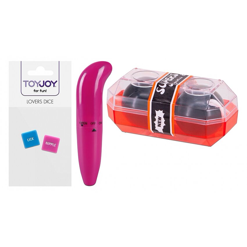 Set complet pentru momente pasionale: vibrator arcuit pentru punctul G, bile Kegel pentru tonifiere și zaruri erotice pentru provocări. Unirea e ideală pentru preludiu, antrenament și jocuri sexuale ce crește senzațiile.