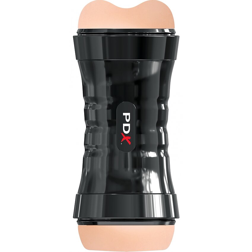 Stroker dublu PDX Extreme cu două capete realiste și auto-lubrifiere activată cu apă. Manson din TPR (Fanta Flesh) pentru atingere naturală, carcasă ABS ergonomică cu mânere EZ-Grip, manson detașabil și capace de protecție.