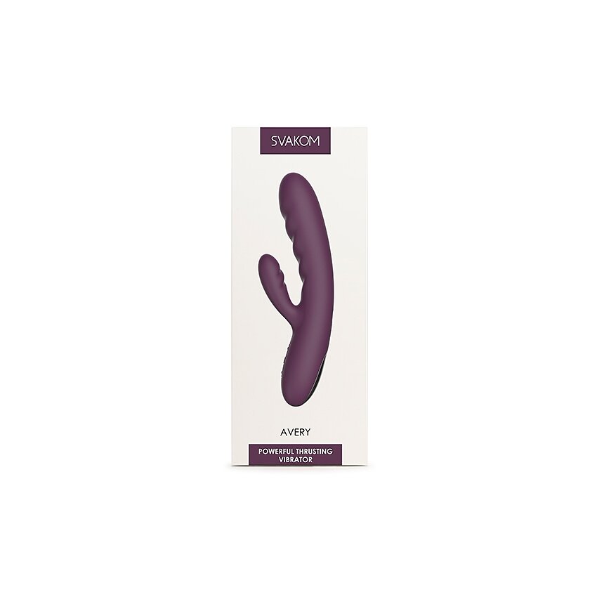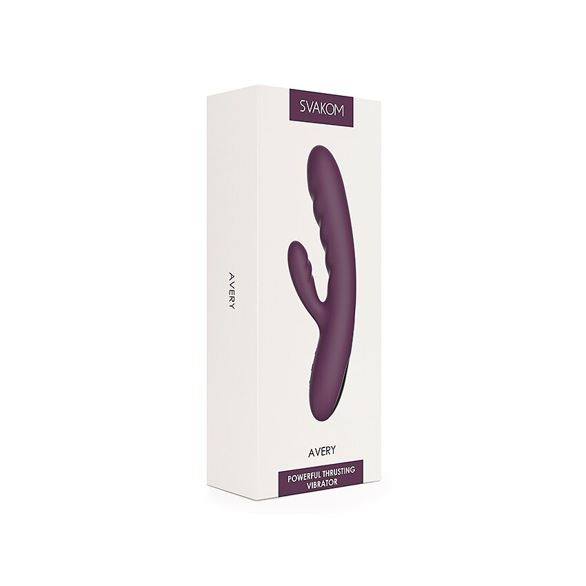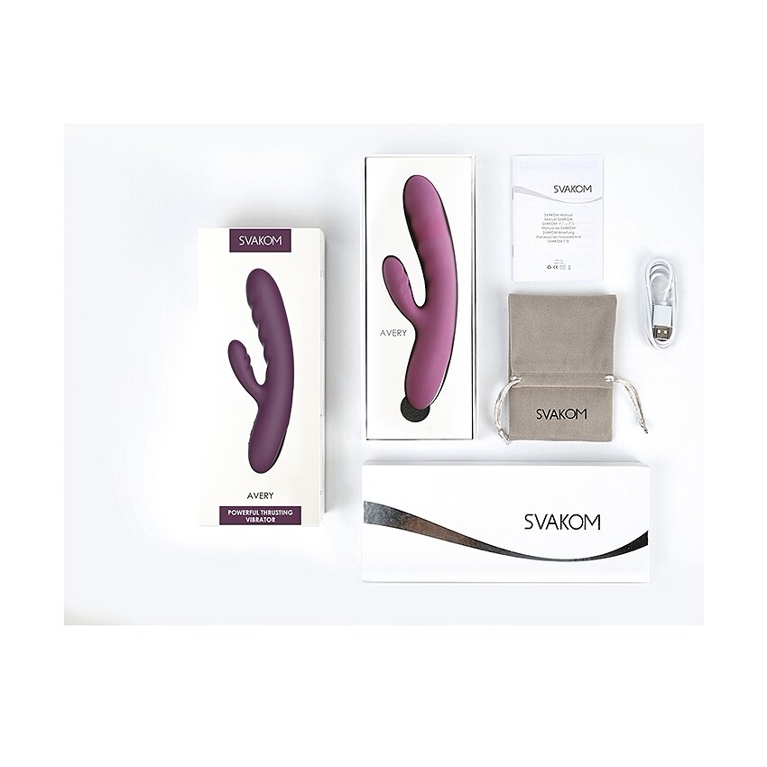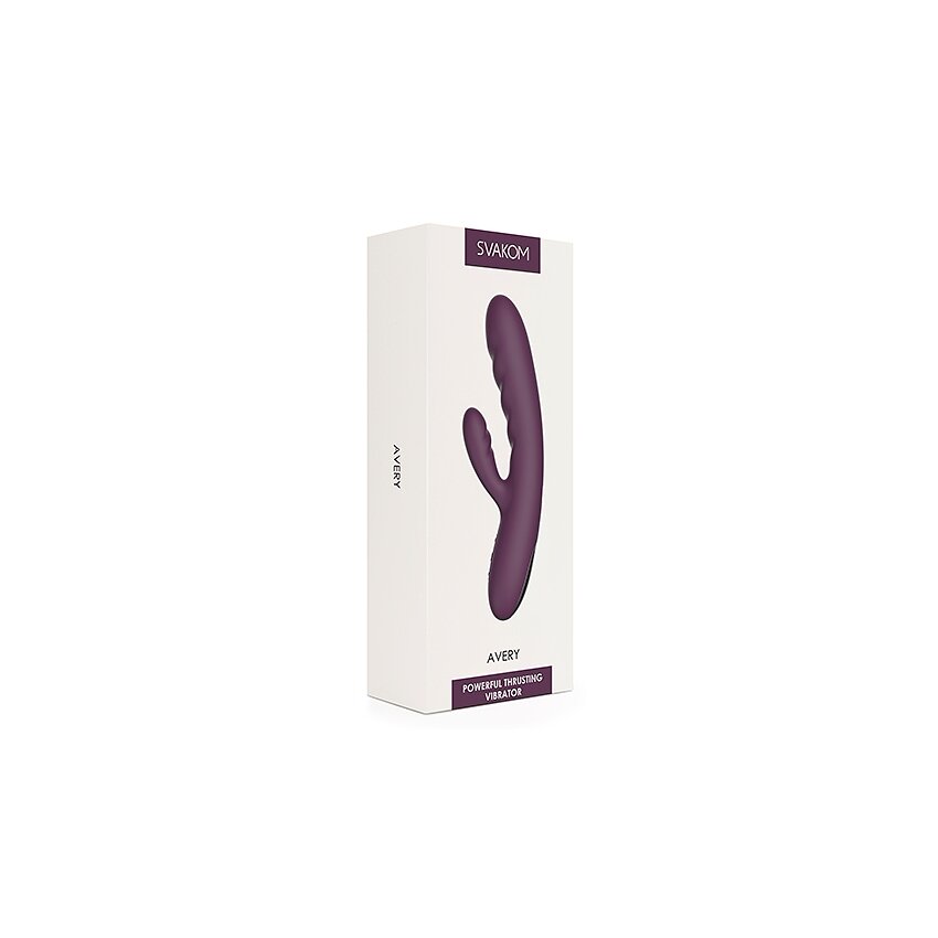 Svakom Avery Lilac este un rabbit reîncărcabil făcut pentru stârnire duală: un cap puternic cu mișcare de impingere și un stimulator lateral flexibil. Funcțiile pot fi activate separat sau simultan, pentru reglaje precise adaptate preferințelor.
