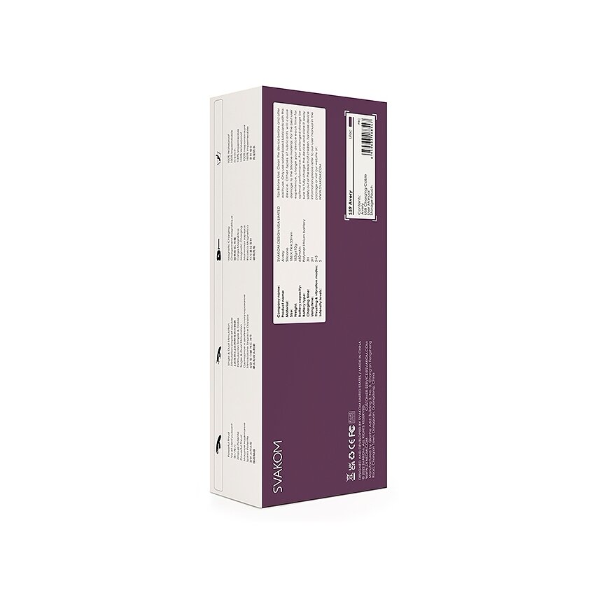 Lungime Totală: 18.6 cm Diametru: 3.3 cm Culoare: Lilac Material: Silicon Ultra-moale și ABS Livrare: Discreta Are Mai Multe Trepte De Vibrație Reîncărcabil Are funcție de împingere Rezistent La Apă Brand:Svakom