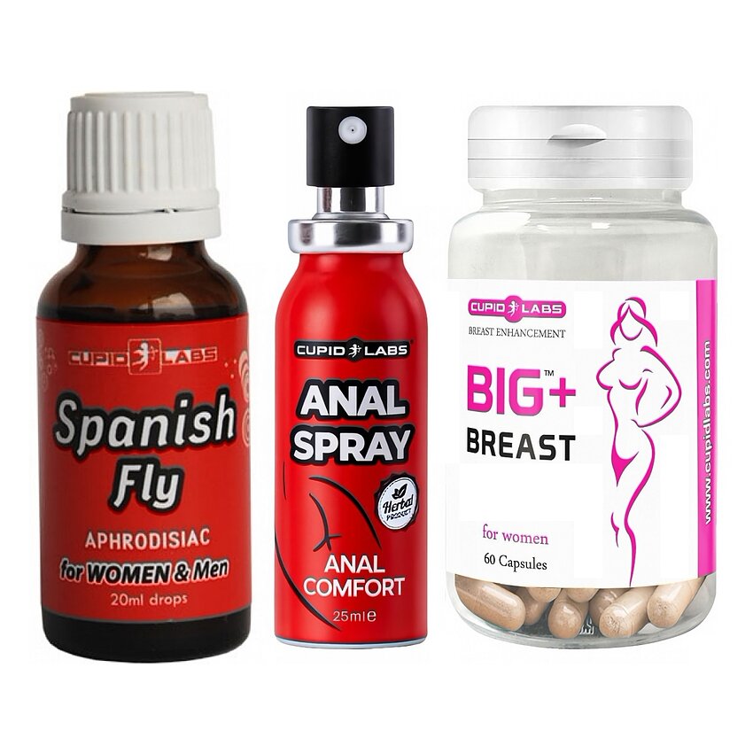 Cum să le uzați împreună: începeți administrarea pastilelor conform indicațiilor pentru rezultate treptate (2 capsule/zi pentru Big Breast). Picăturile Spanish Fly se folosesc ocazional, 10–15 picături în lichid sau sub limbă cu ~30 minute premergător momentului intim (maxim o doză în 24h). Spray-ul anal se aplică local cu câteva pulverizări înainte de penetrare, așteptați câteva minute pentru relaxare.